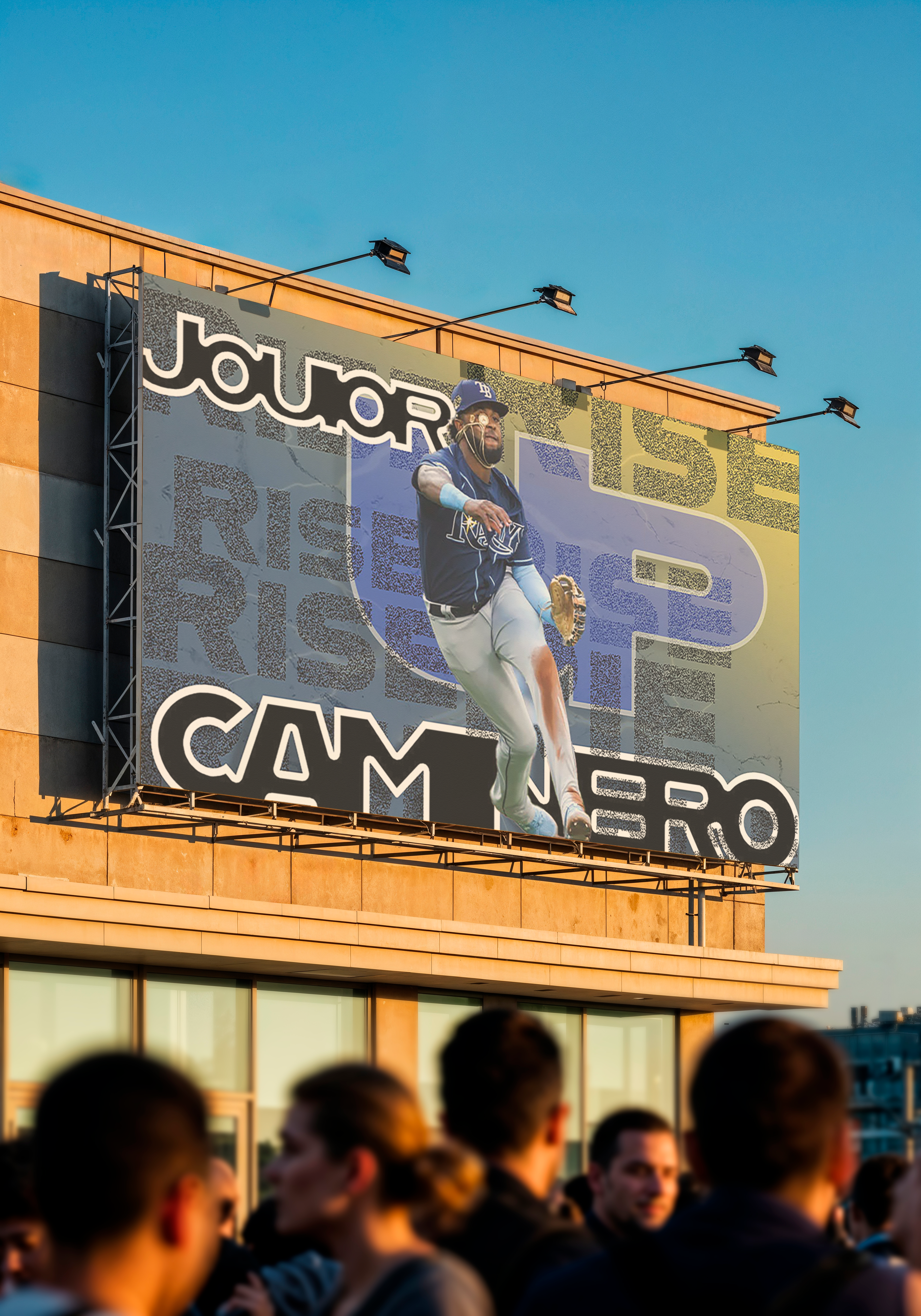 A concept sports poster featuring Rays infielder Junior Caminero. Created in Photoshop with bold typography and layered textures to capture his energy on the field.